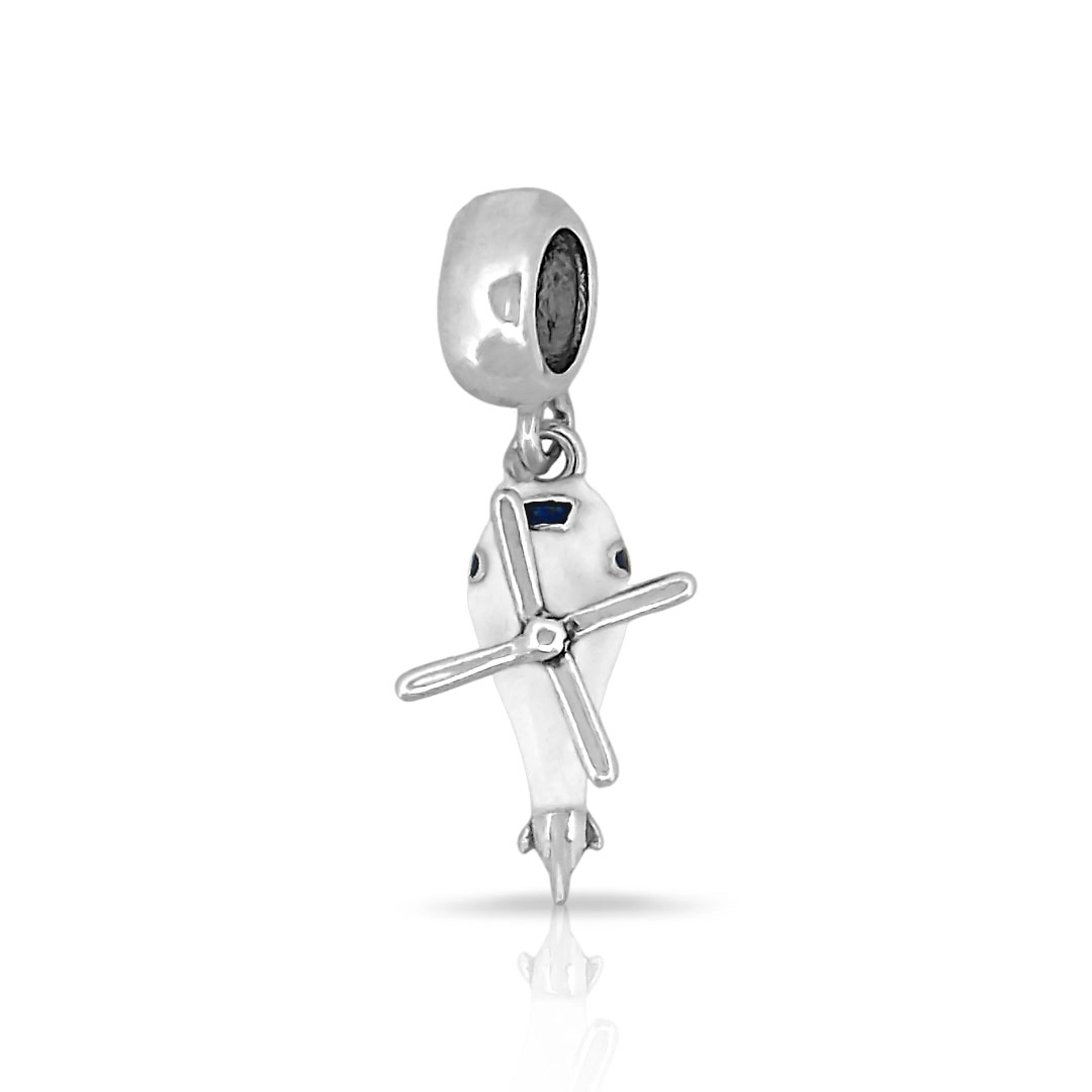 Berloque de Prata Balanço Helicóptero com Resina Branca