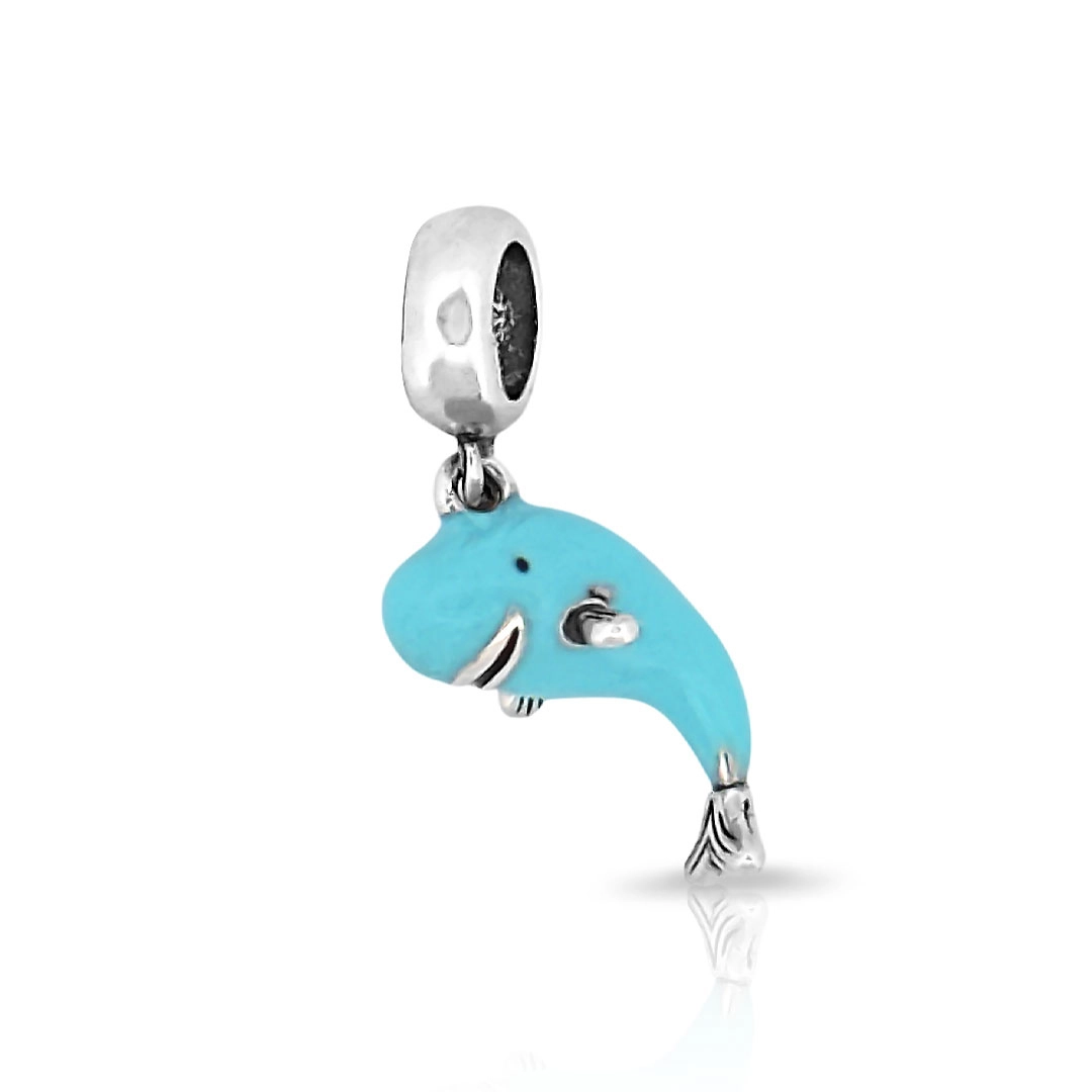 Berloque de Prata Baleia Azul Esmaltada