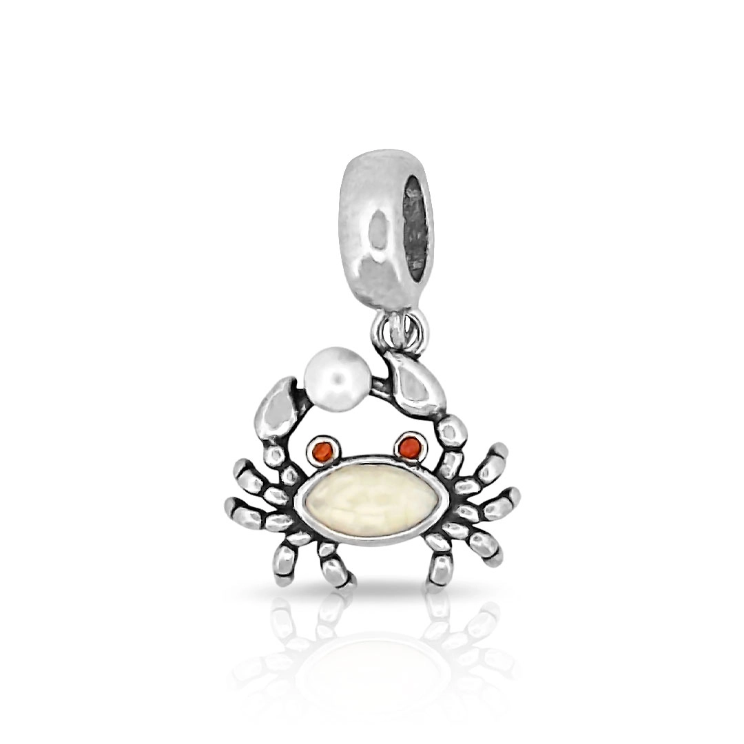 Berloque de Prata Caranguejo Envelhecido com Pérola