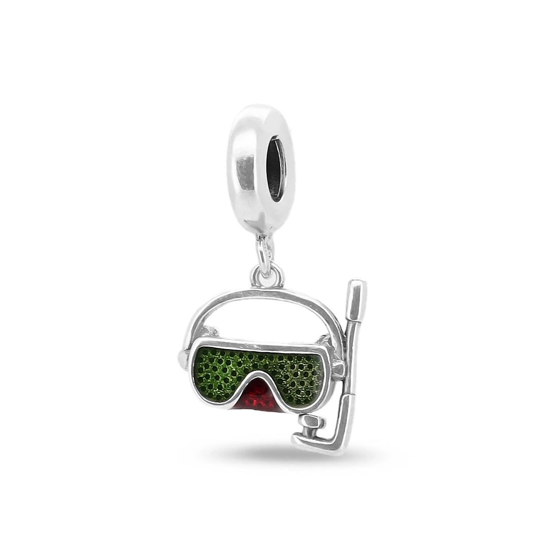 Berloque de Prata com Óculos de Mergulho com Resina Verde e Vermelha