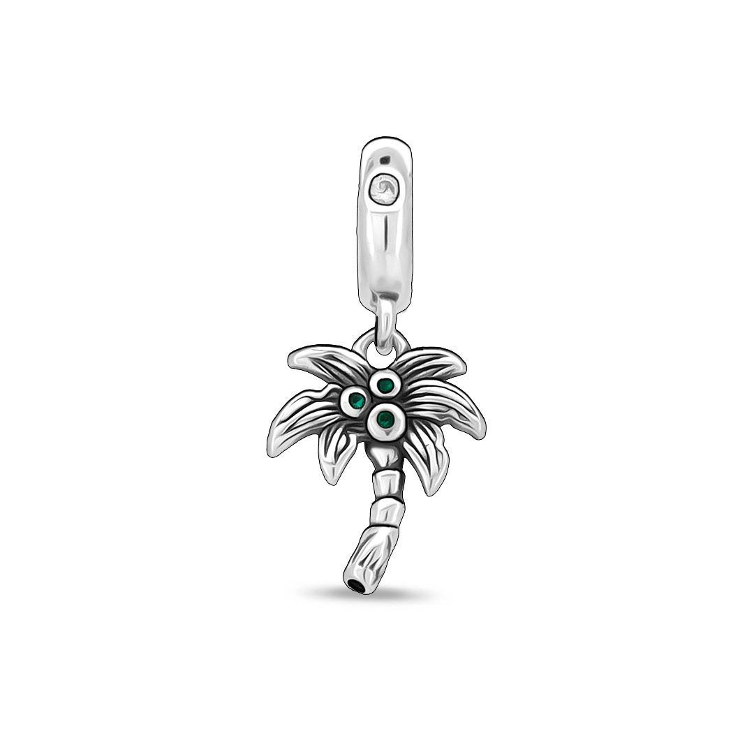 Berloque de Prata Coqueiro Envelhecido com Zircônias Esmeralda e Cristal