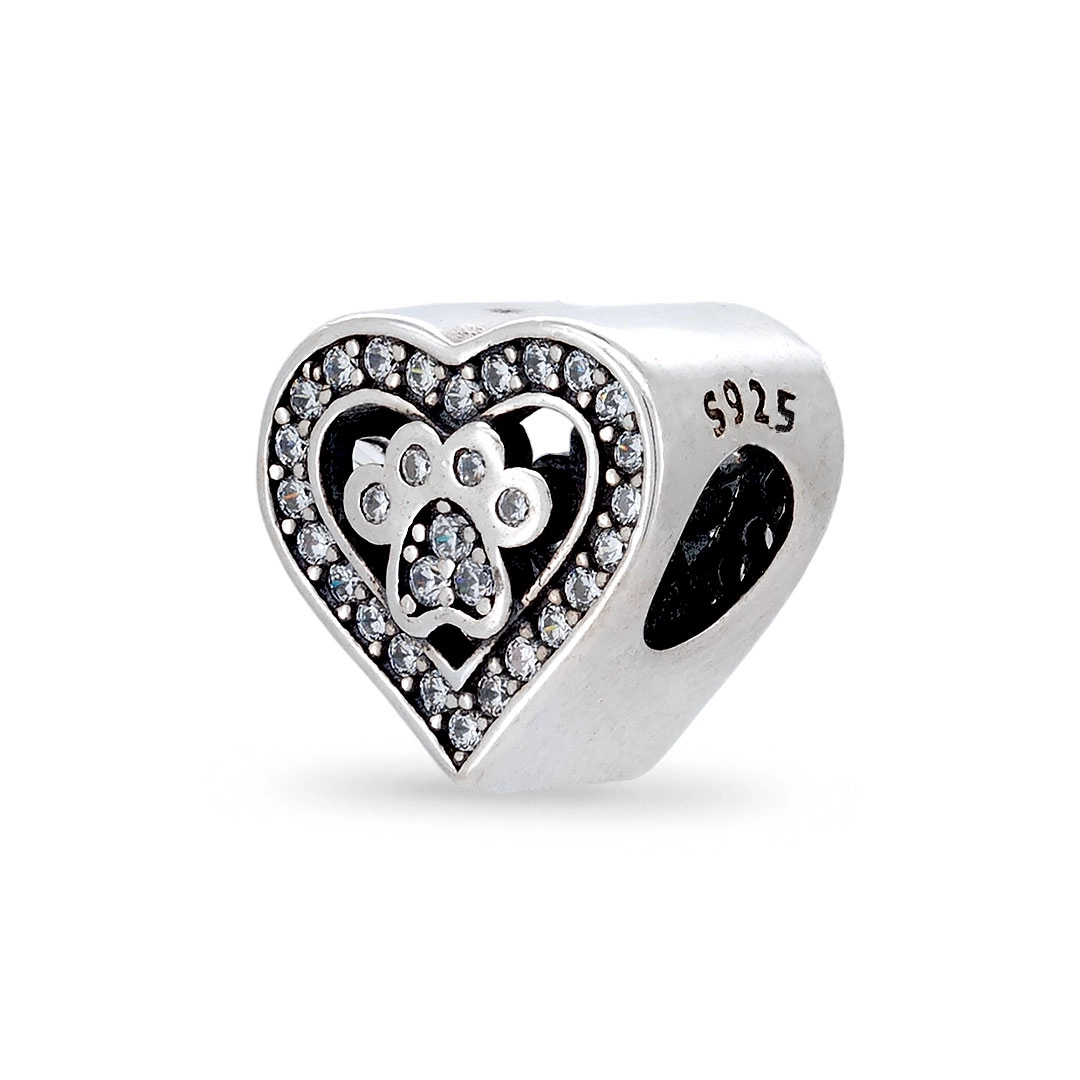 Berloque De Prata Coração Com Pata E Zircônias Cristal