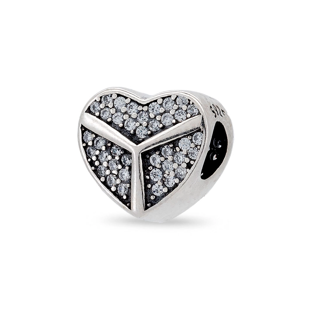 Berloque De Prata Coração Com Zircônia Cristal