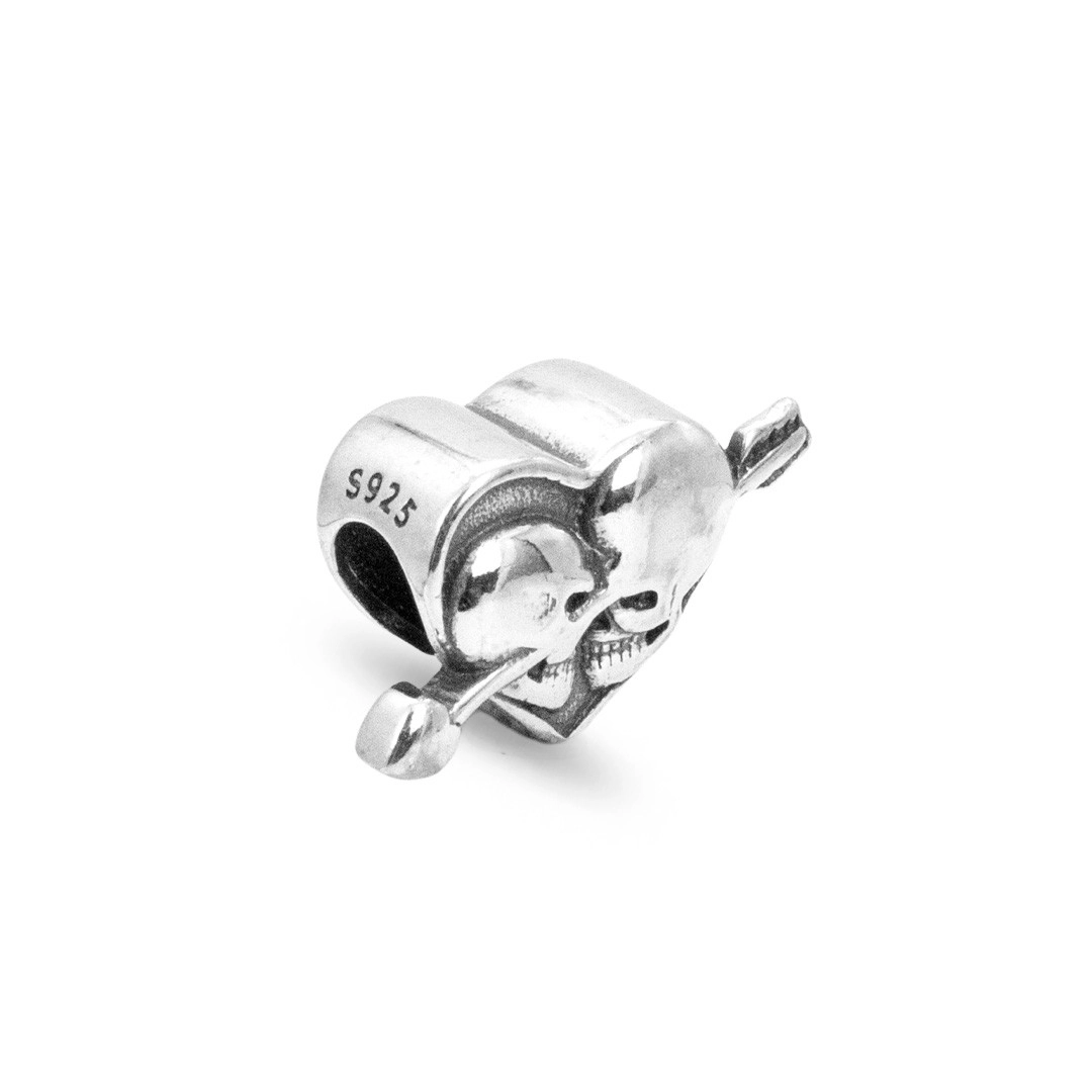 Berloque de Prata Envelhecido Coração com Caveiras e Flecha