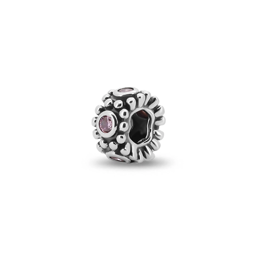 Berloque de Prata Envelhecido Trabalhado com Zircônia Rosa