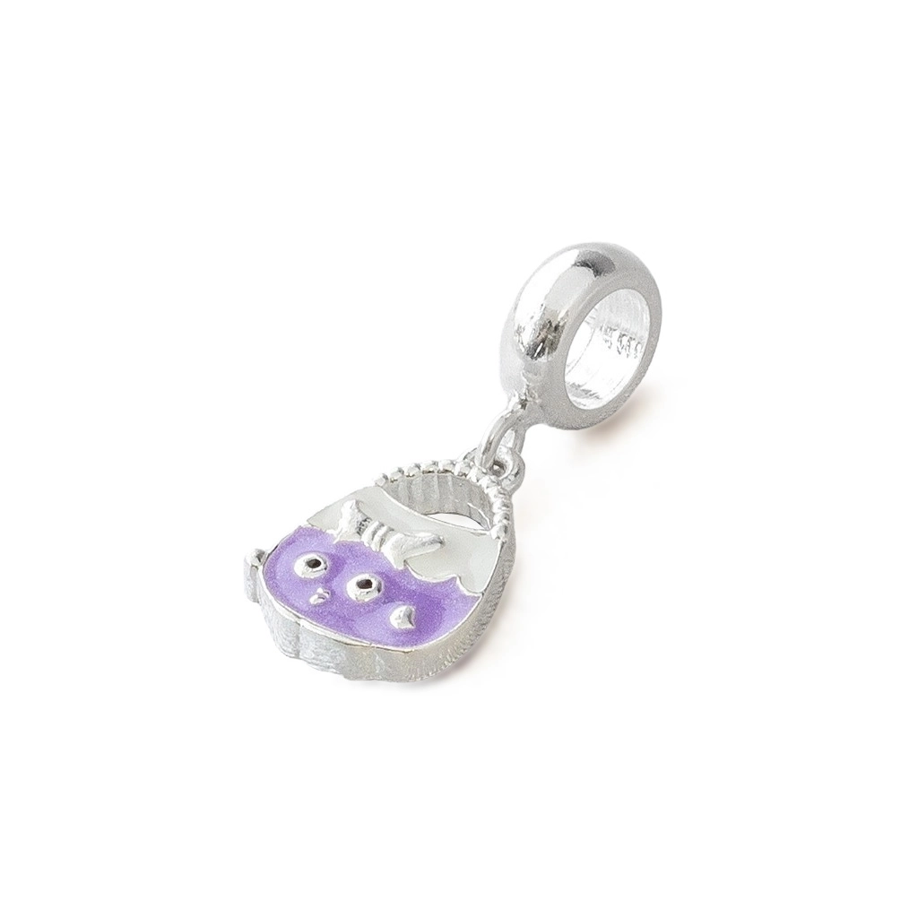 Berloque de Prata Leve Infantil Bolsa Lilás com Rosto e Laço