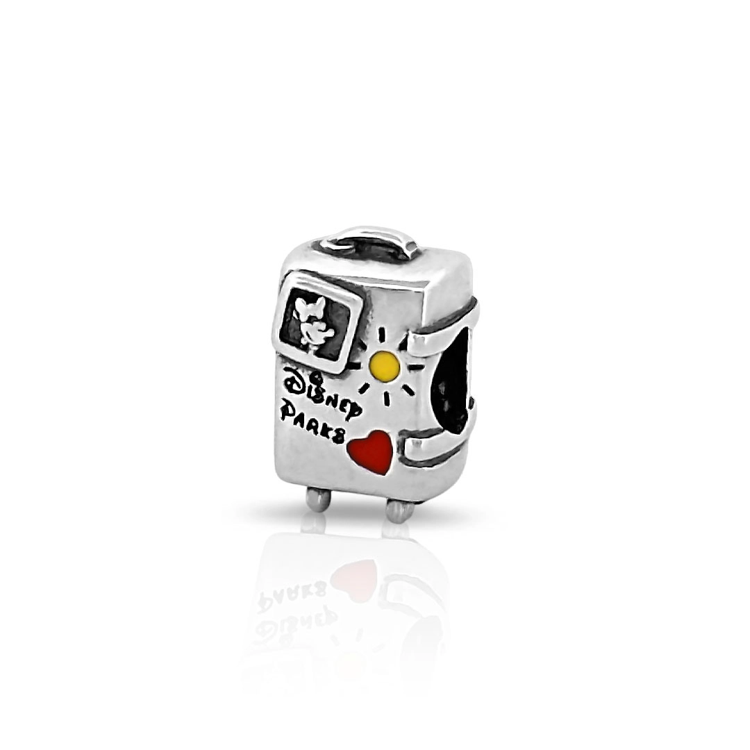 Pingente em formato de mala com sol, coração e estrela em resina.