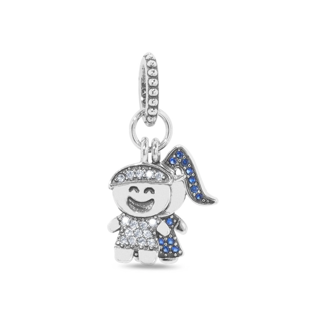 Berloque de Prata Menino e Menina com Zircônia Safira e Zircônia Cristal