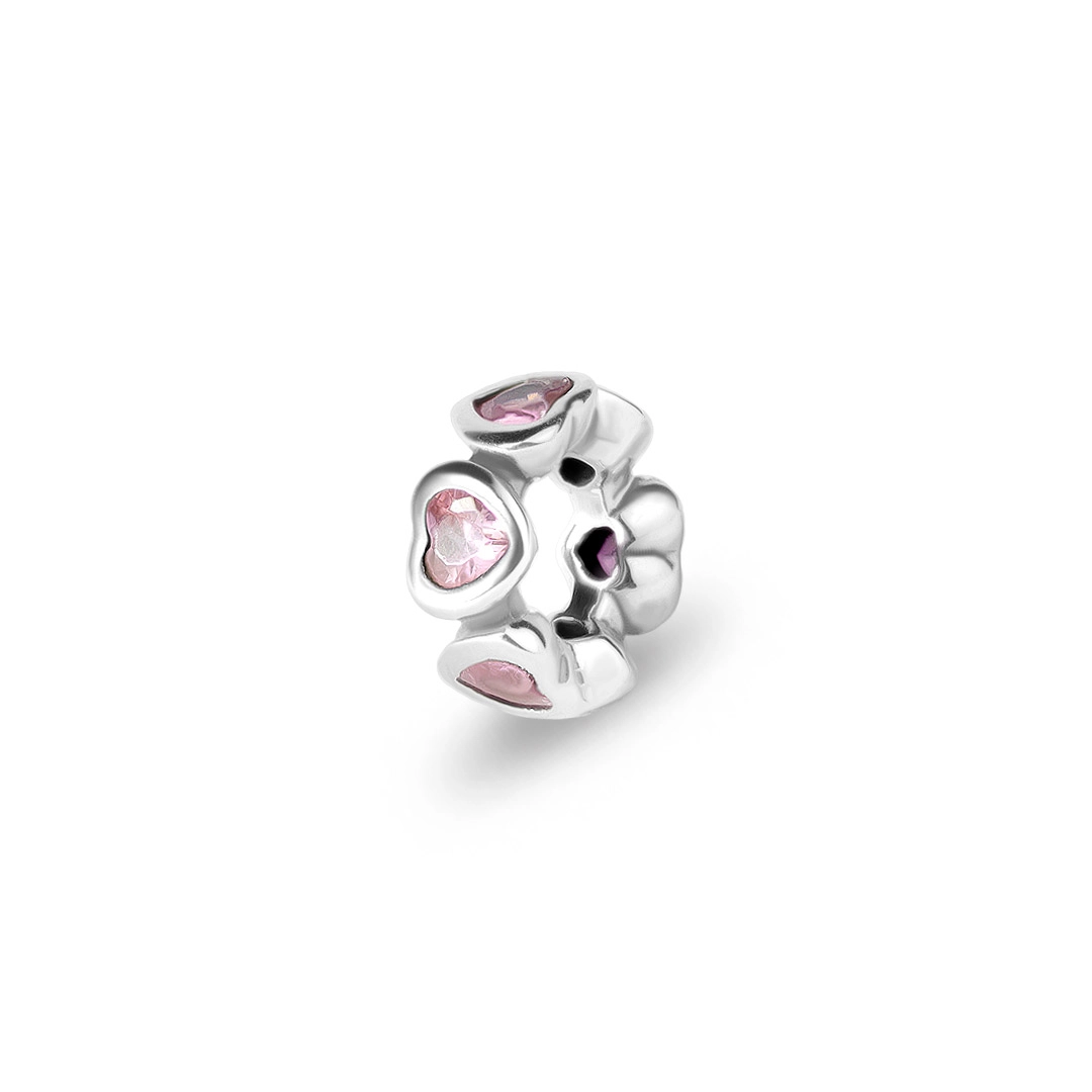 Berloque de Prata Separador Corações com Zircônia Rosa