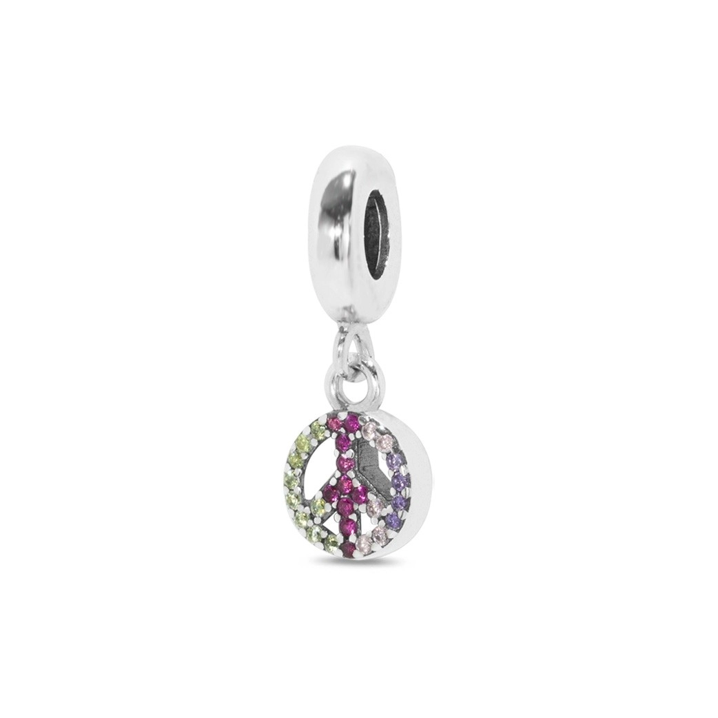 Berloque de Prata Símbolo da Paz com Zircônia Colorida