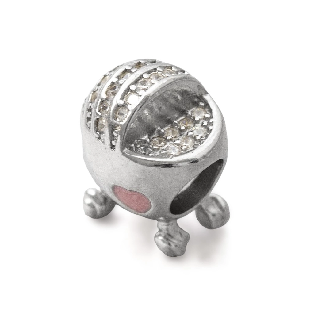 Berloque de Prata Carrinho de Bebê com Coração Rosa