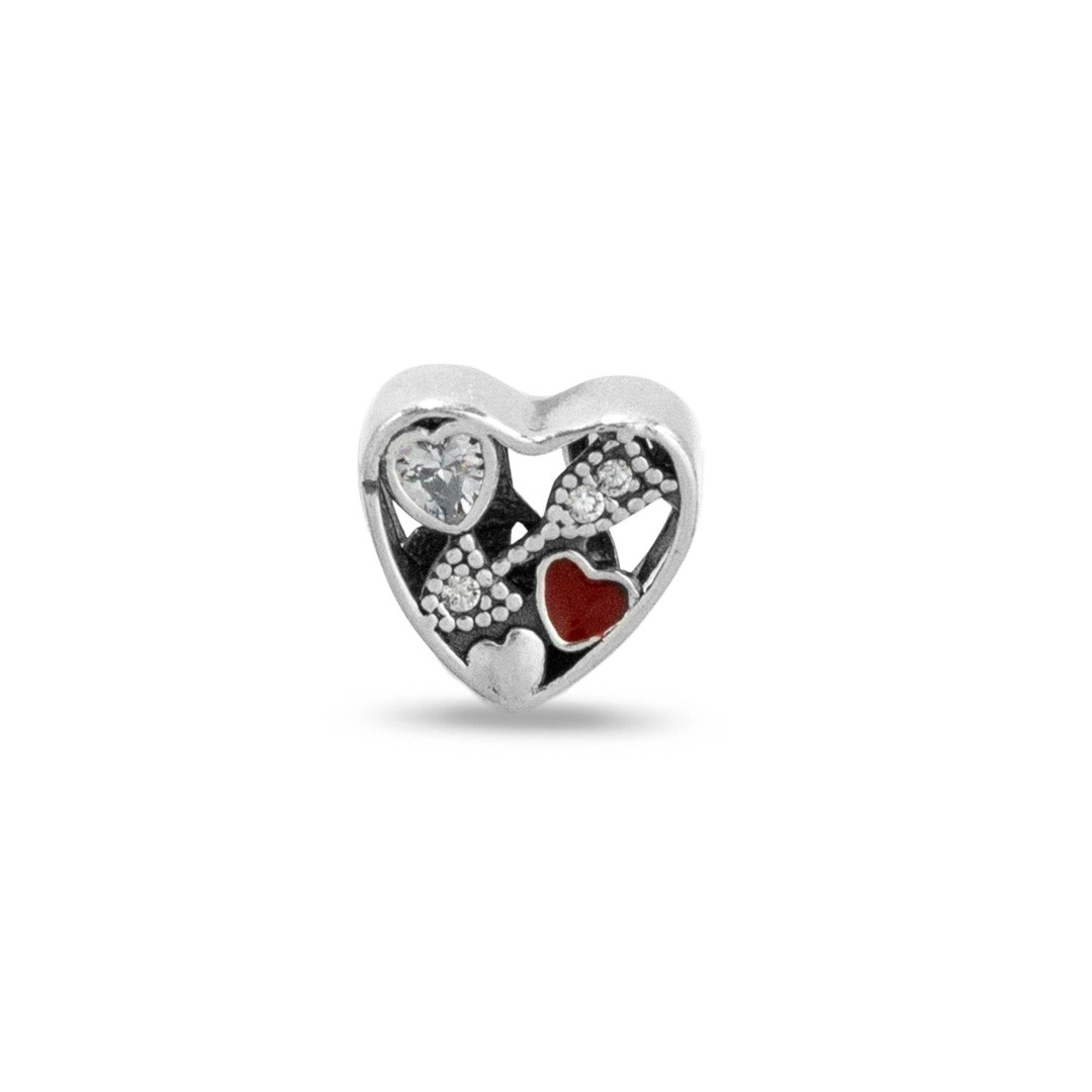 Berloque de Prata Coração e Flecha com Resina Vermelha e Zircônia Cristal