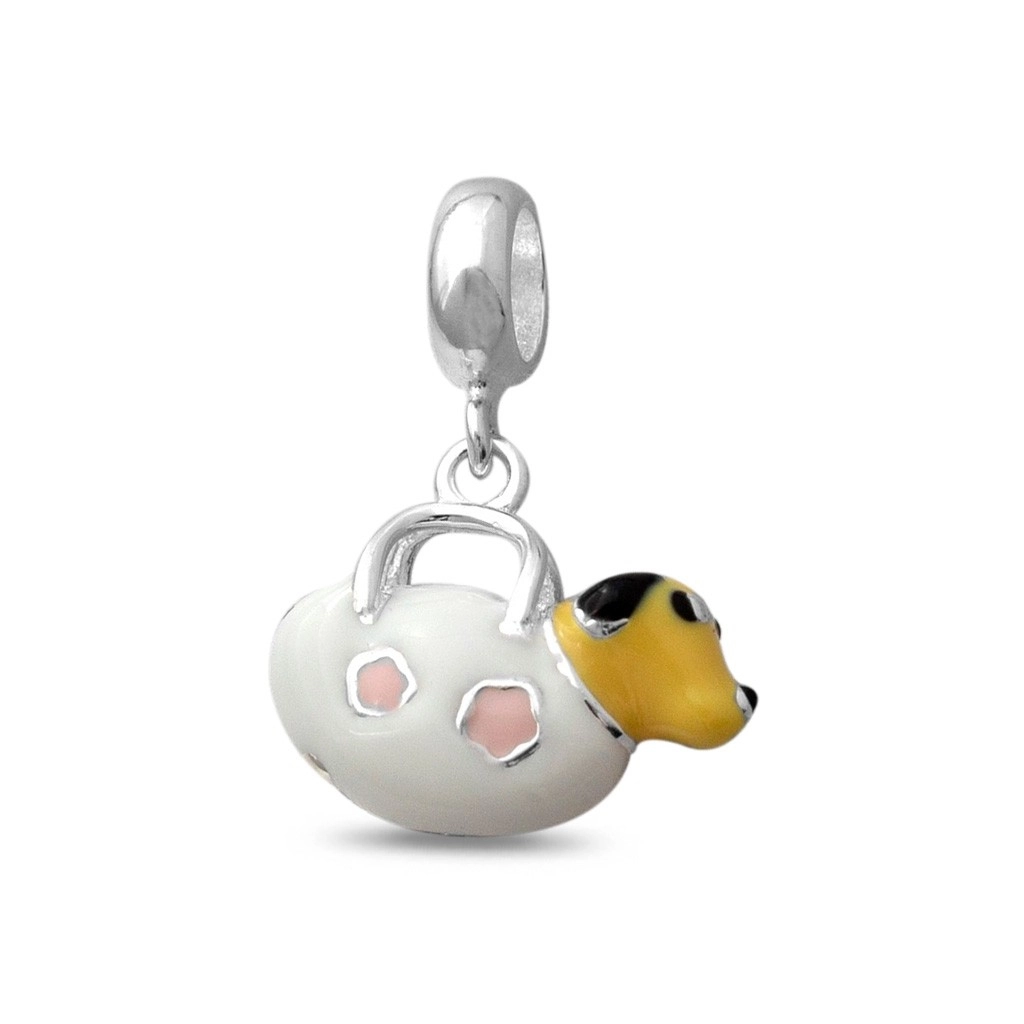 Berloque de Prata Esmaltado Bolsa com Cachorro