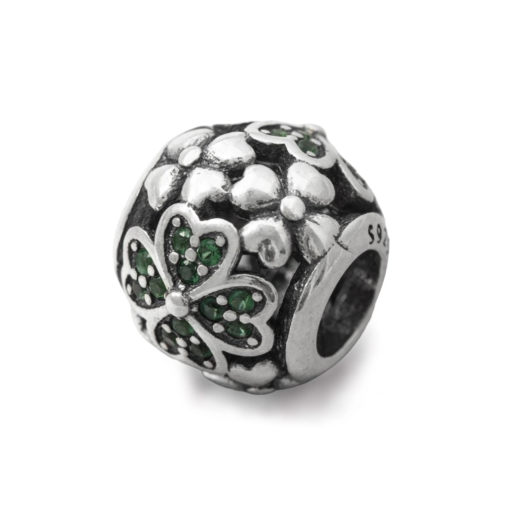 Berloque de Prata Trevo com Zircônia Esmeralda