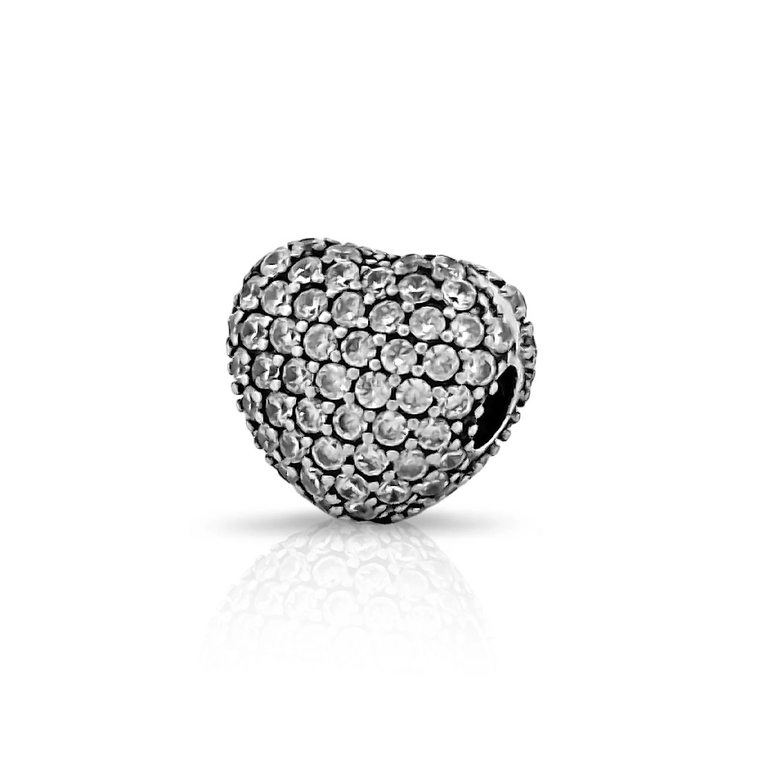 Berloque de Prata Trava de Coração com Zircônias Cristal Cravejadas
