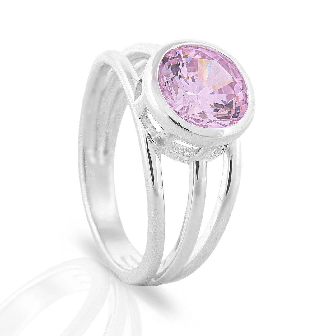 Bracelete articulado com zircônias cristal e três zircônias rosa.