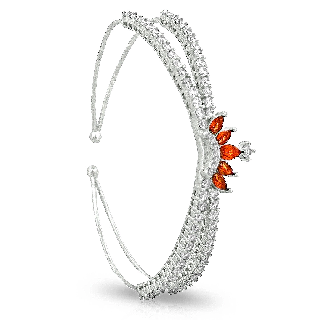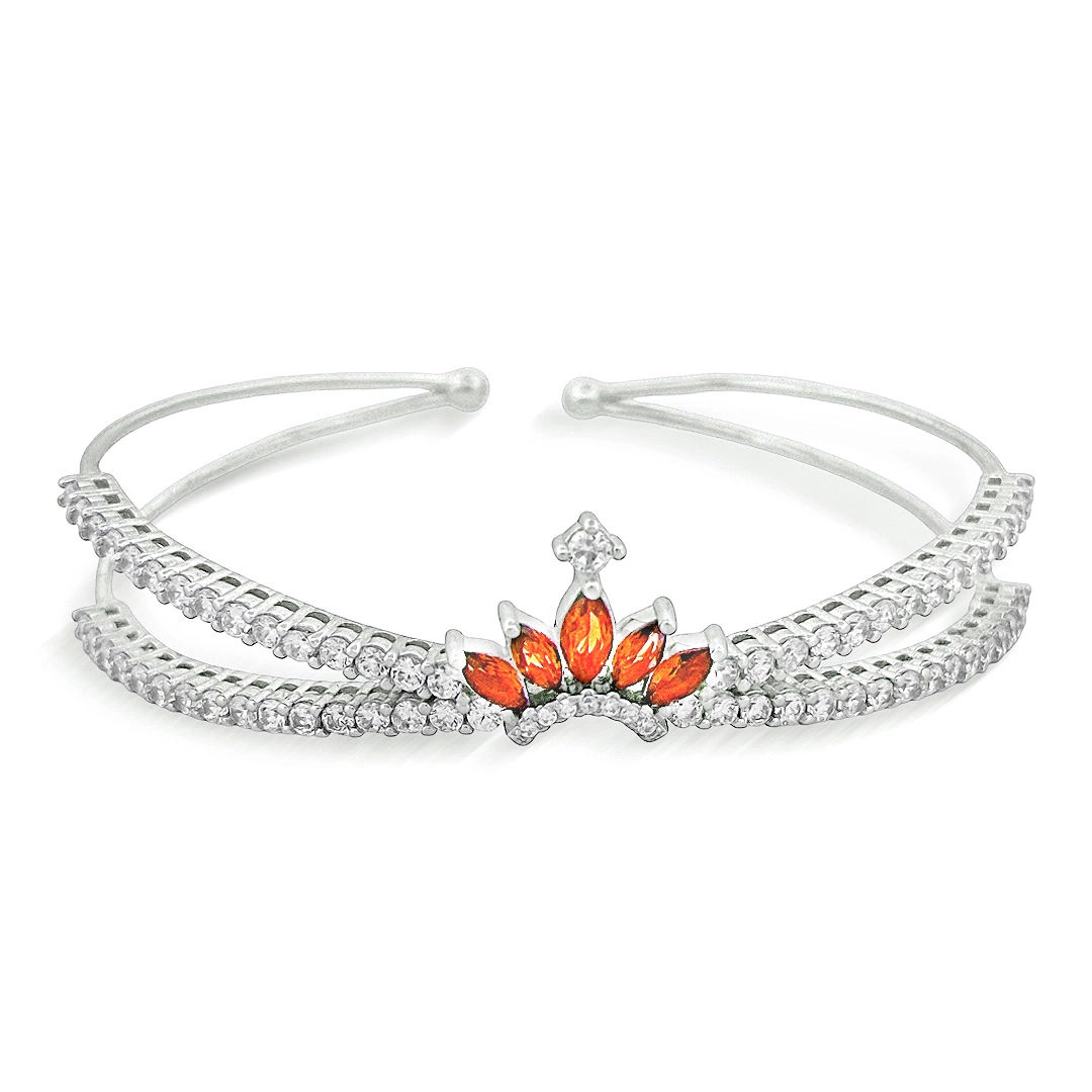 Bracelete aberto com zircônias cristal cravejadas e Coroa em zircônias granada.