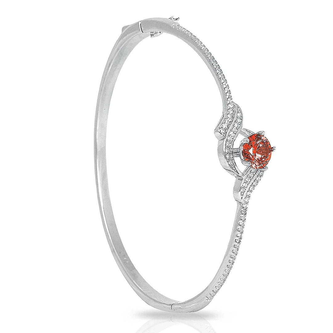Bracelete articulado com zircônias cristal cravejadas e solitário em zircônias granada.