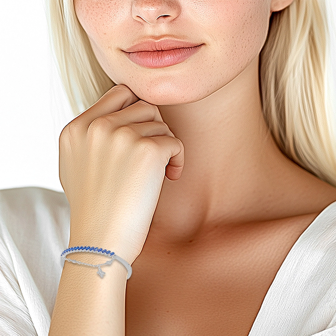 Bracelete articulado de zircônias safira com corrente e pingente de estrela.