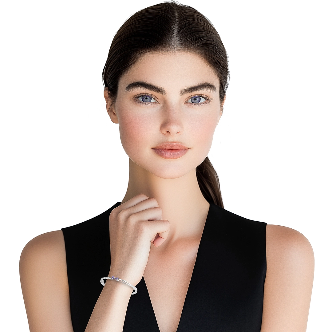 Bracelete de Prata Blend Collection Articulado Laço com Zircônias Ametista