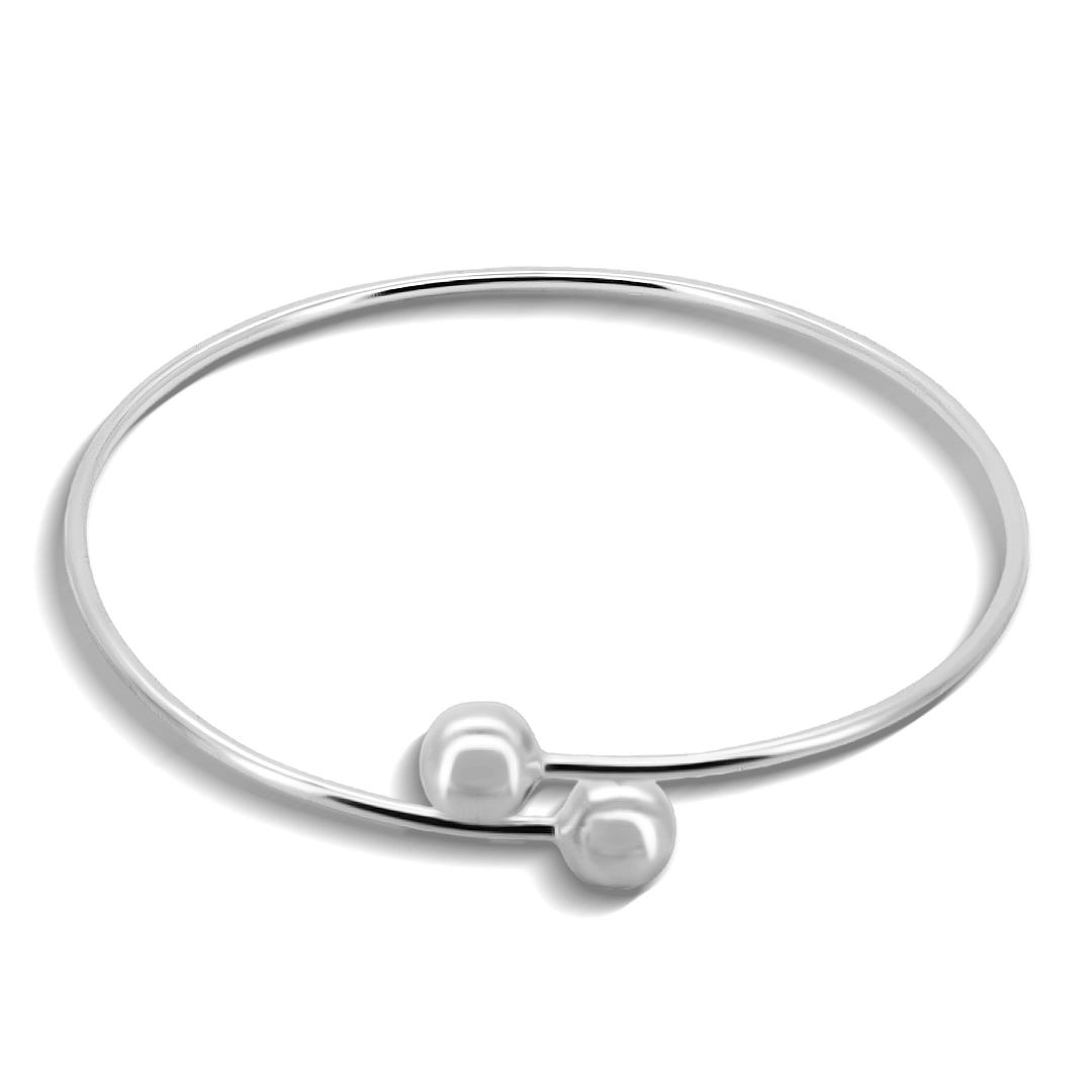 Bracelete de Prata Delicado com Esfera Dupla e Espelhada