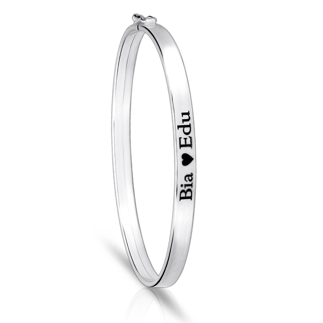 Bracelete de Prata Oval Personalizado em Fio Quadrado