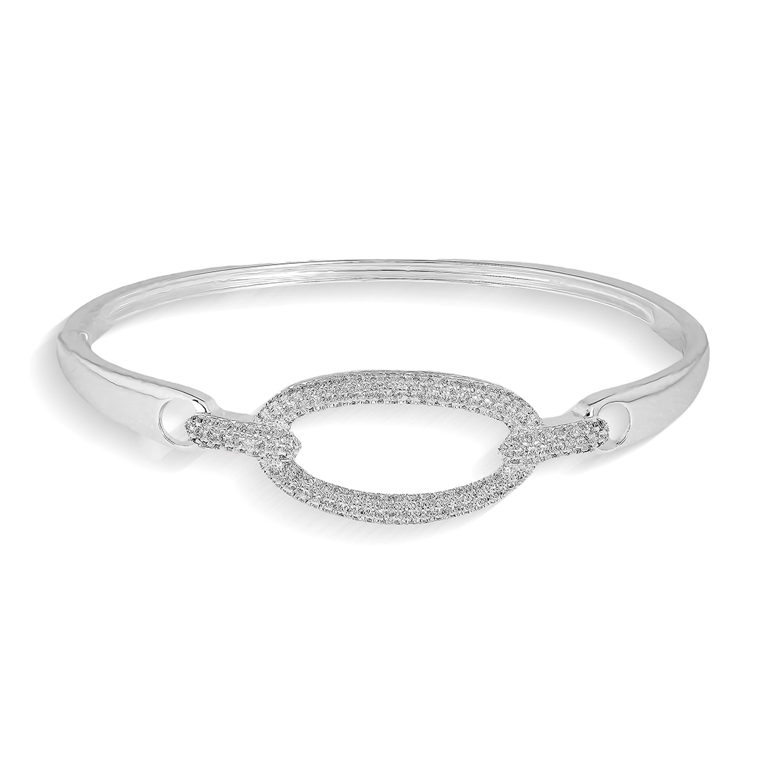 Bracelete Em Prata Leve Articulado Com Círculo Cravejado e Zircônias Cristal