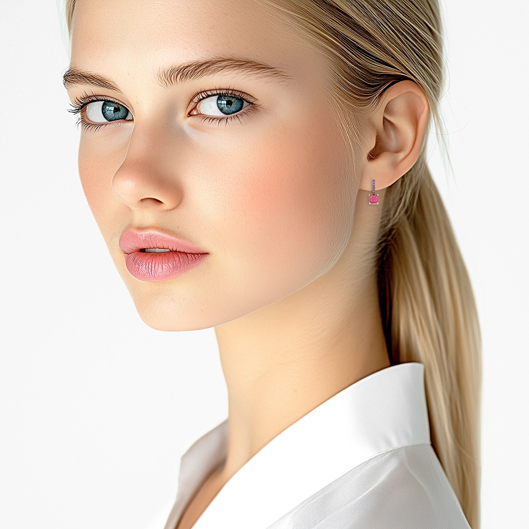Brinco top com zircônias rosa quadrada.