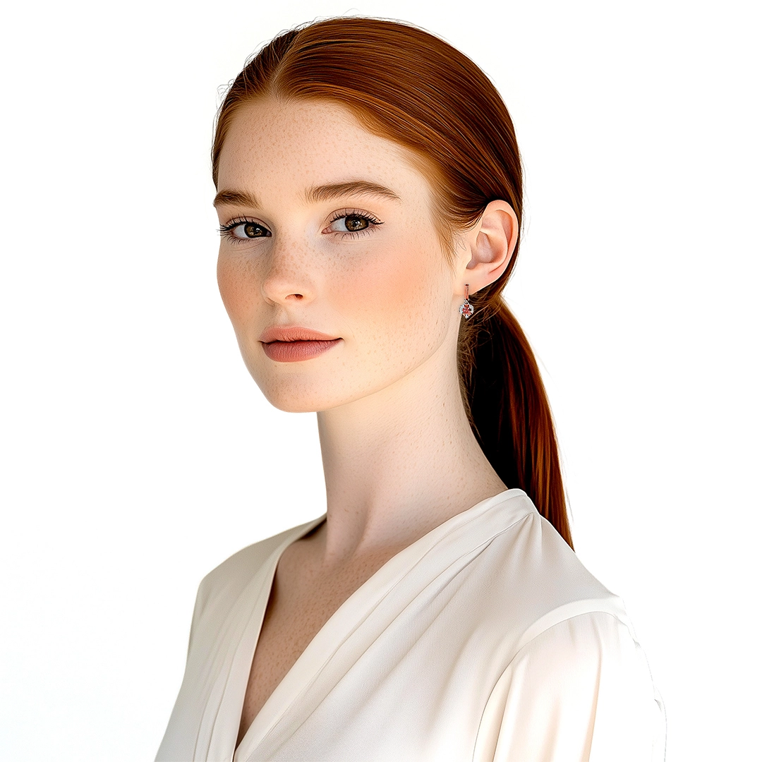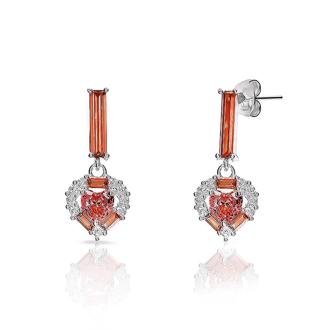 Brinco balanço de zircônias granada com coração.