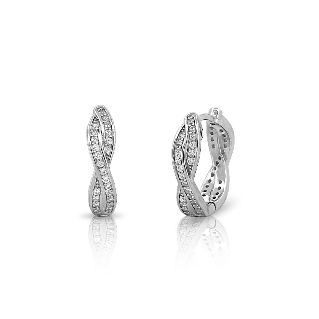 Brinco de argola clic trançado com zircônias cristal.