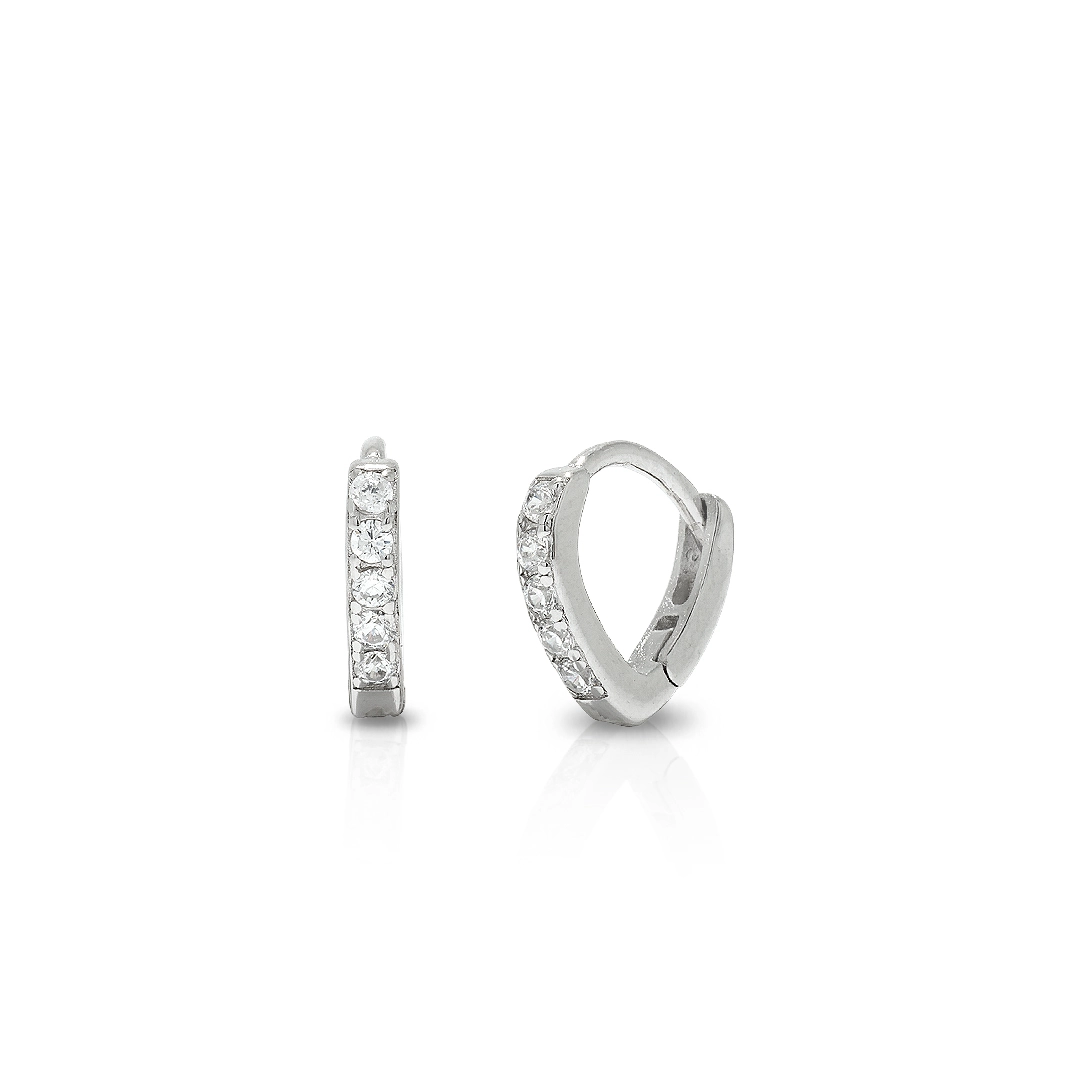 Brinco de argola clic em formato V com zircônias cristal e tamanho P.