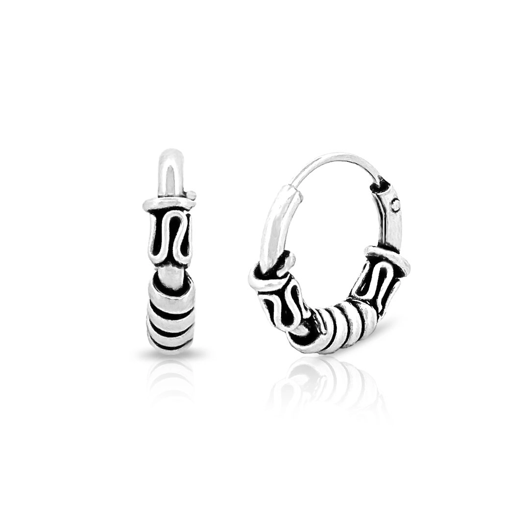 Brinco de Prata Argola em Estilo Bali com Esfera