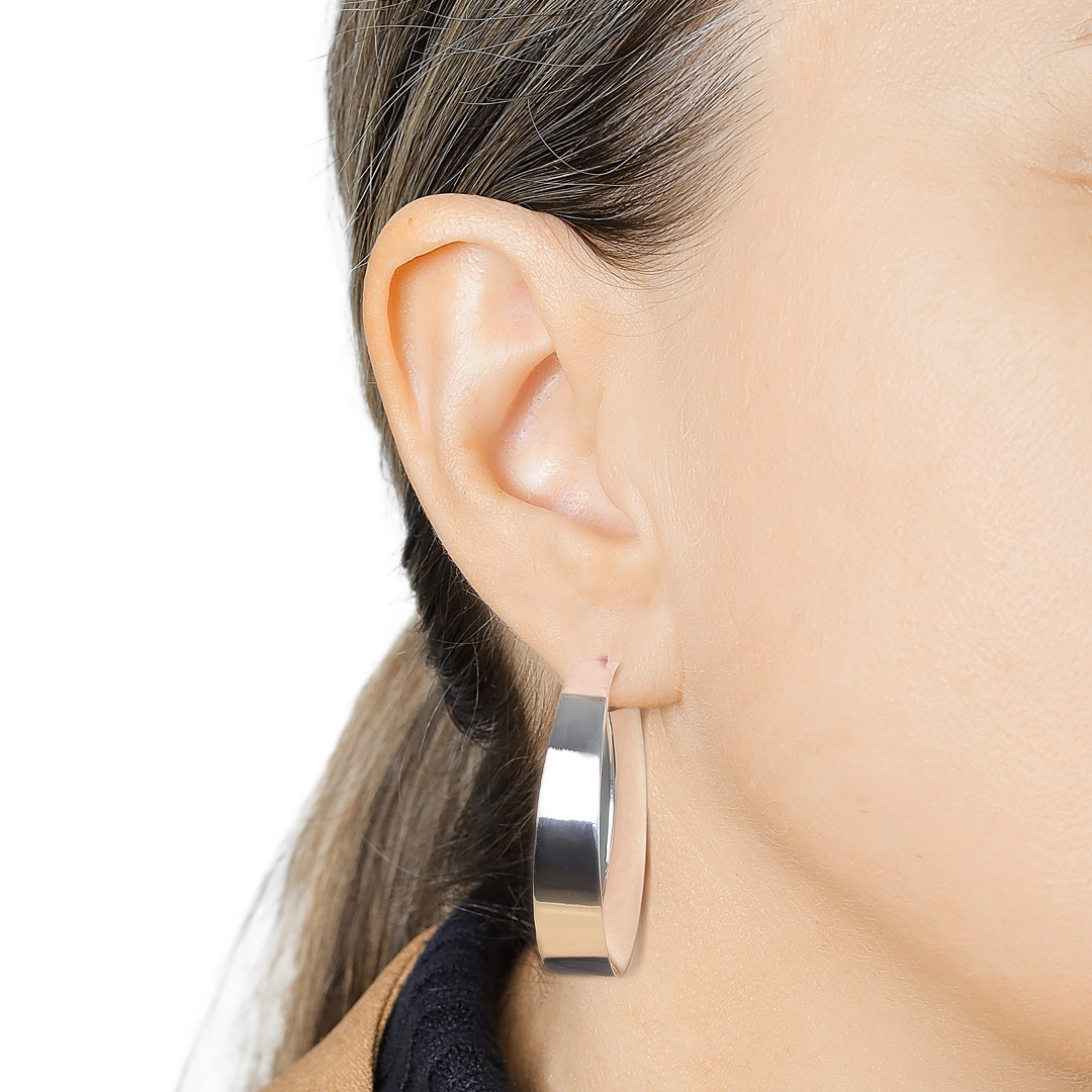 Brinco de argola espelhada com tarraxa.