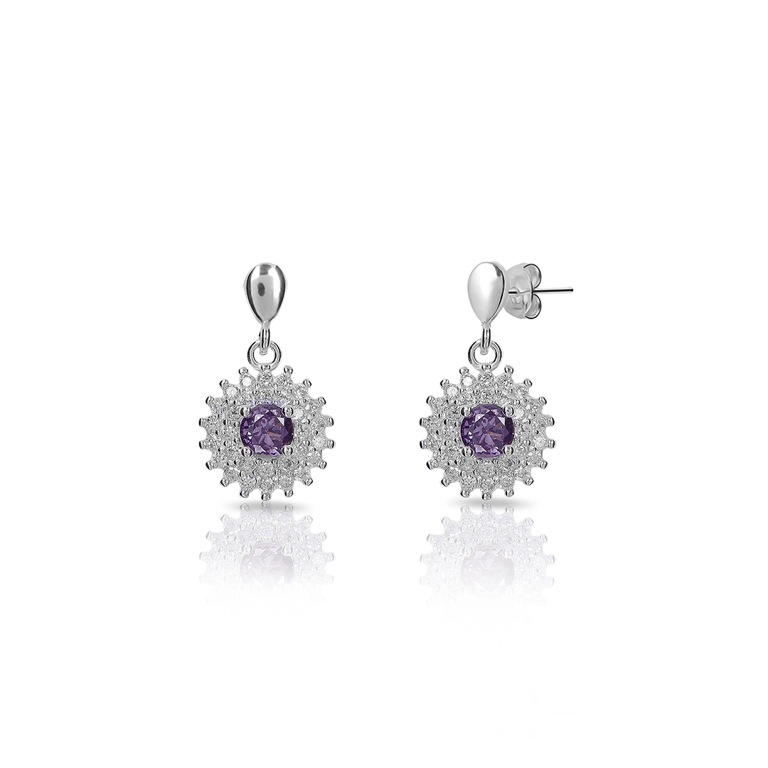 Brinco de Prata Balanço Blend Collection com Zircônias Ametista e Cristal Redonda