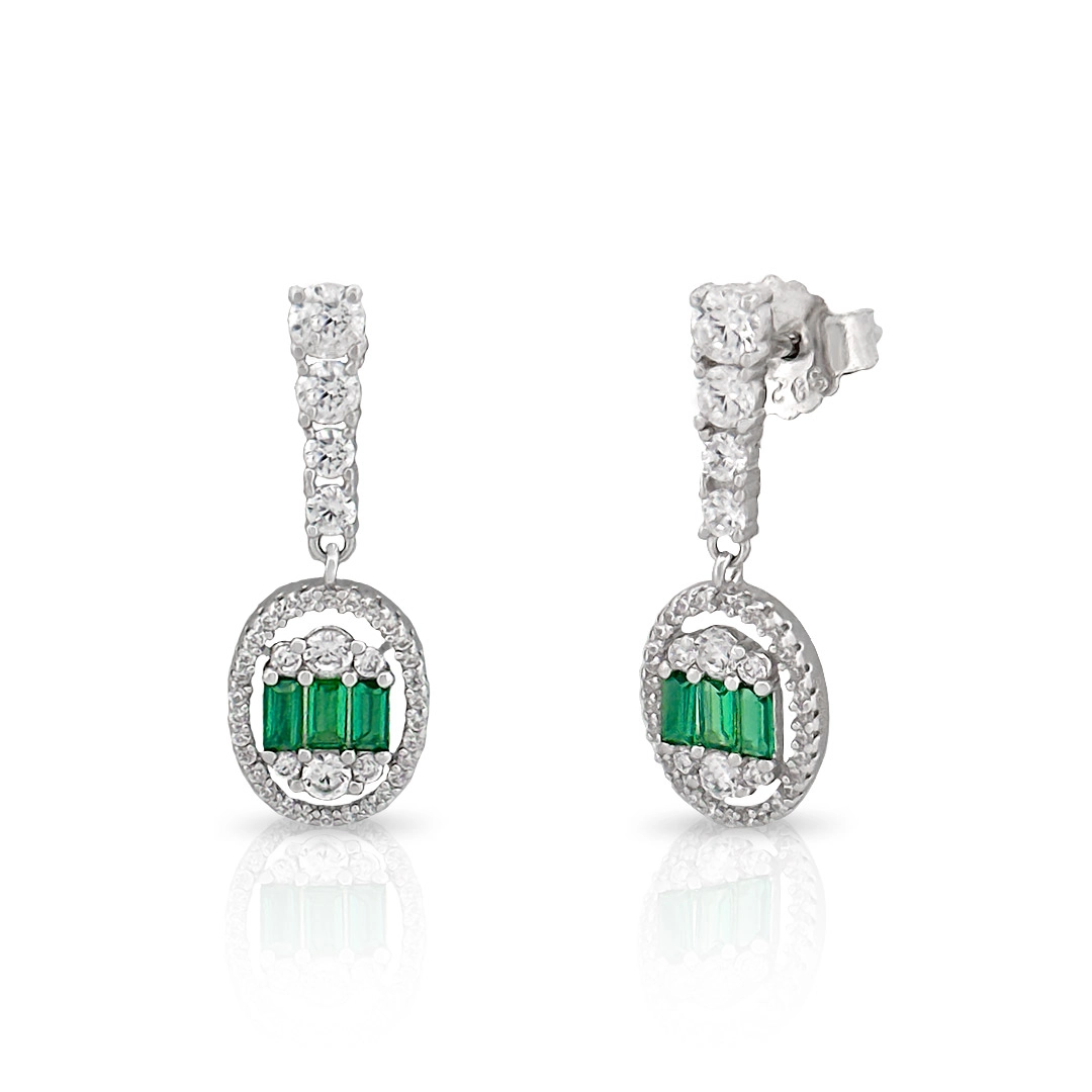 Brinco de Prata Balanço Blend Collection Oval com Zircônias Cristal e Esmeralda
