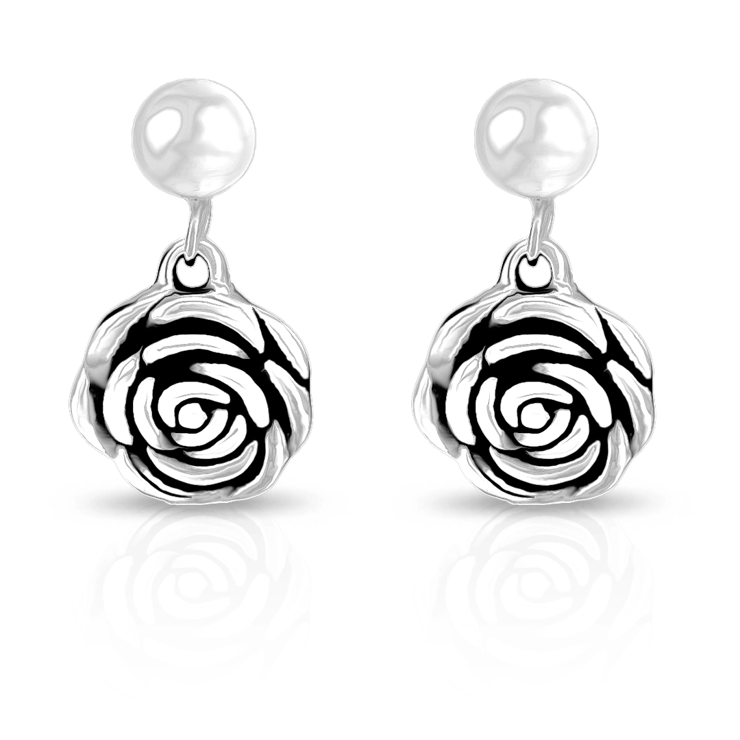 Brinco de Prata Balanço com Flor Oca e Envelhecida
