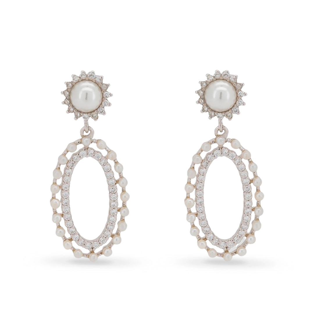 Brinco balanço com micro pérolas sintetizadas e zircônias cristal.