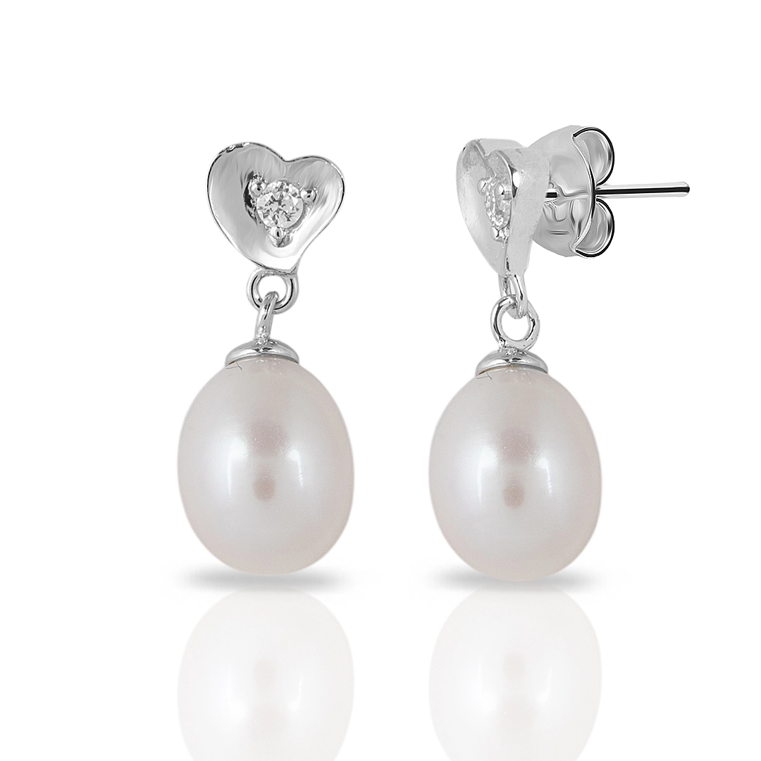Brinco de Prata Balanço com Pérola Biwa e Coração Com Zircônias Cristal