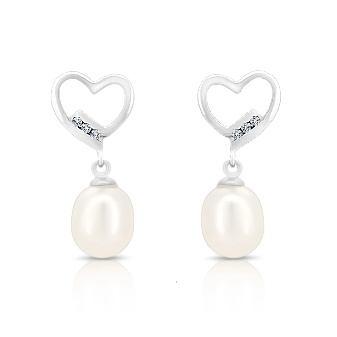 Brinco de Prata Balanço com Pérola Biwa e Zircônia Cristal