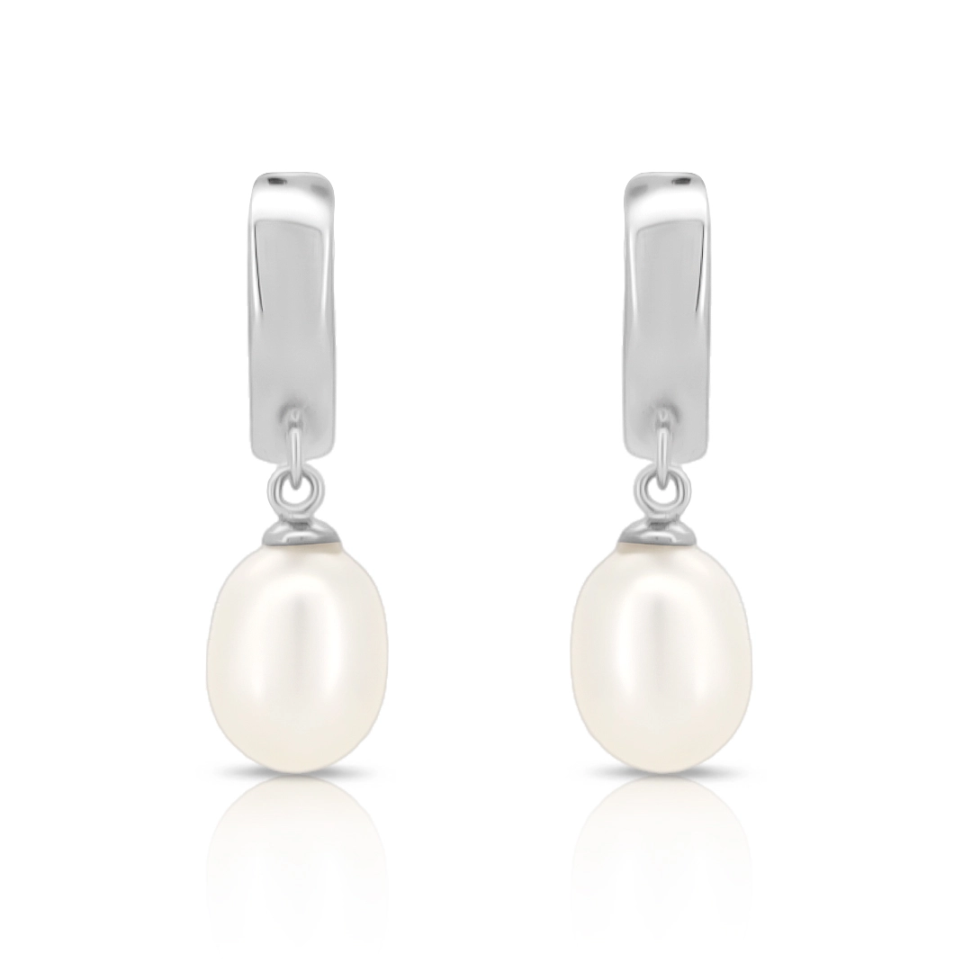 Brinco de Prata Balanço Espelhado com Pérola Biwa
