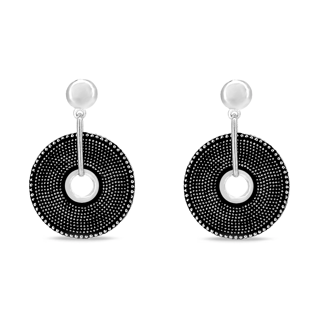 Brinco de Prata Balanço Redondo com Trabalhado Envelhecido