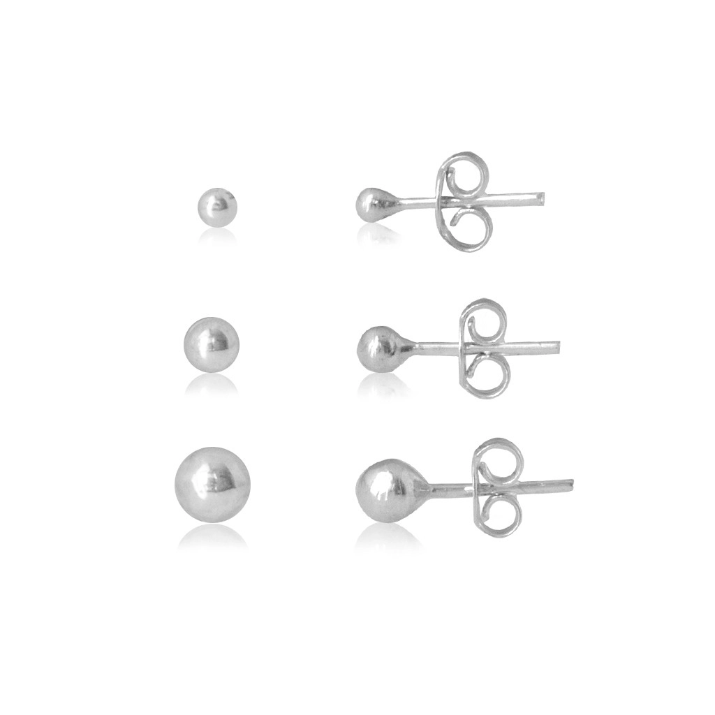 Brinco de Prata Esfera Kit Três Furos