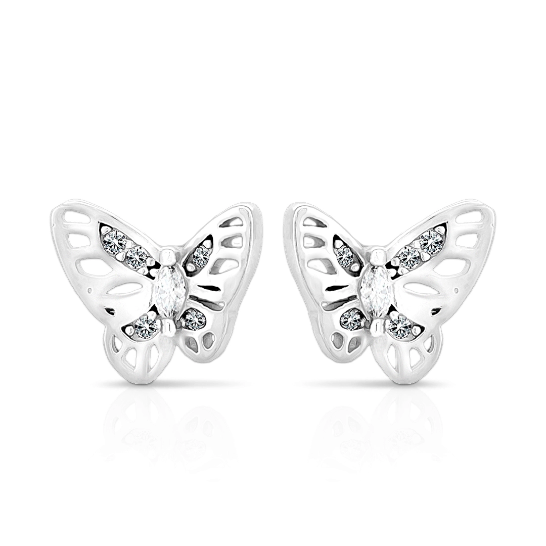 Brinco delicado de borboleta vazada com zircônias cristal.