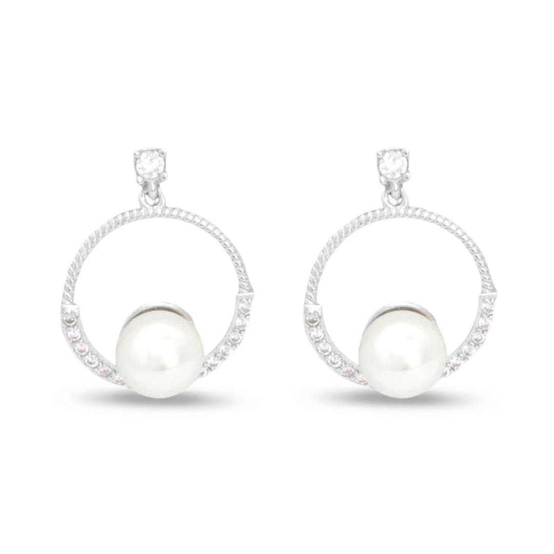 Brinco de Prata Círculo com Pérola Sintética e Zircônia Cristal