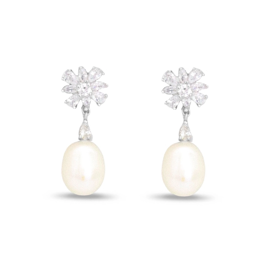 Brinco de Prata com Pérola Biwa e Zircônia Cristal