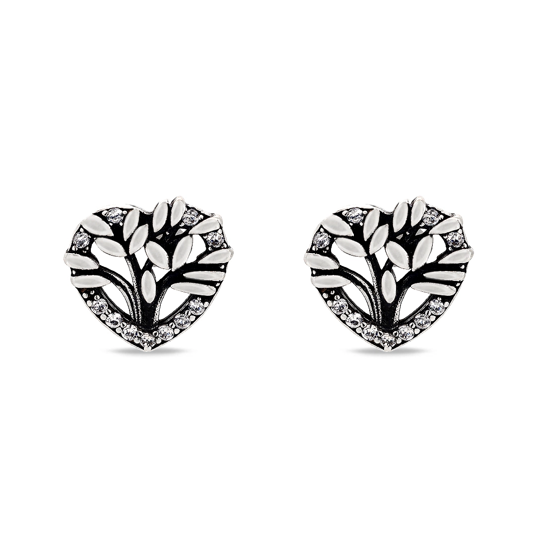 Brinco de Prata Coração com Árvore da Vida e Zircônias Cristal