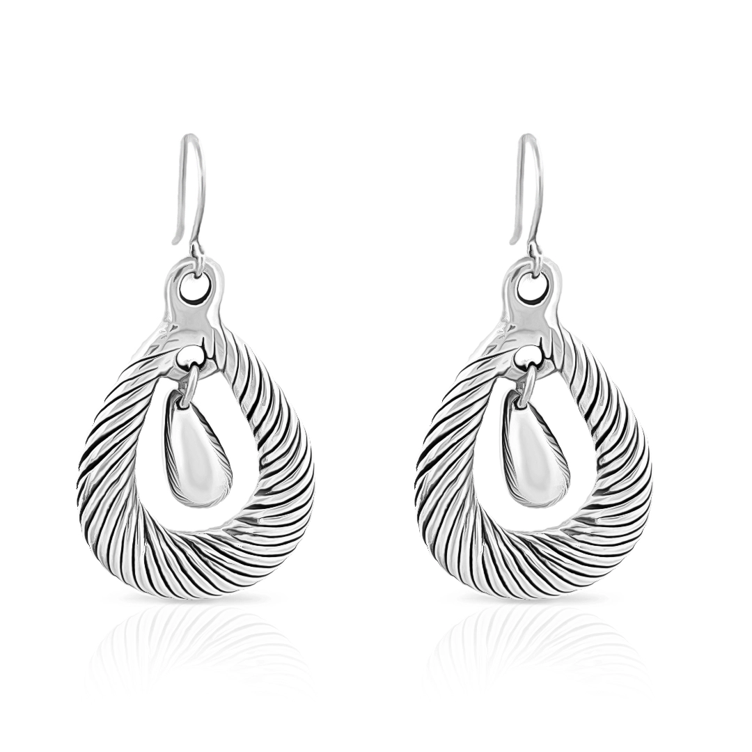 Brinco de Prata Gancho com Gota Oca Vazada e Envelhecida