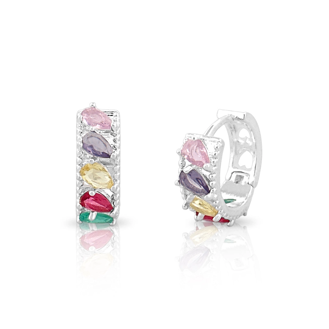 Brinco de Prata Leve Argola Clic com Gotas em Zircônias Coloridas