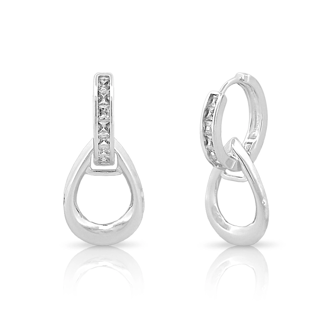 Brinco de Prata Leve Argola Clic com Zircônia Cristal e Gota Vazada