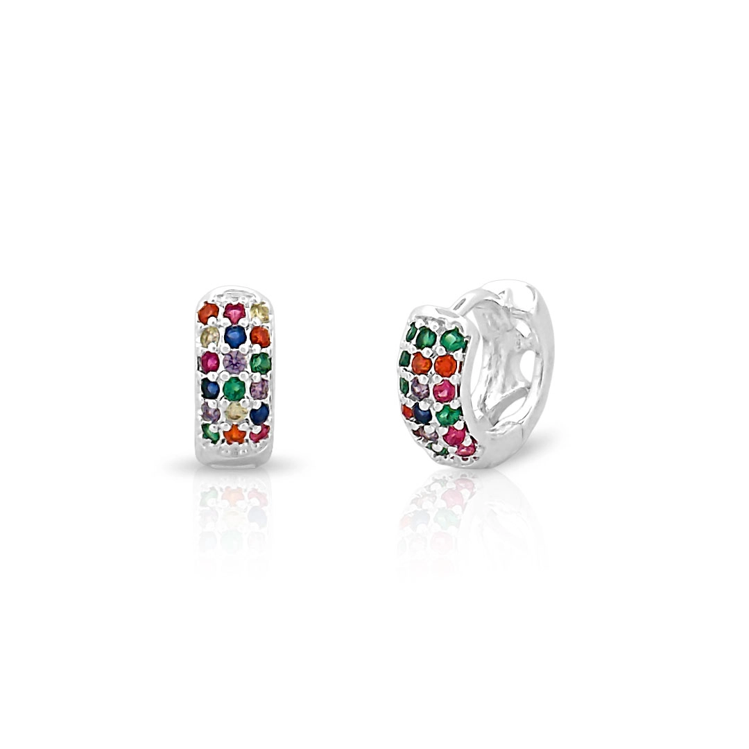 Brinco de Prata Leve Argola Clic com Zircônias Coloridas P